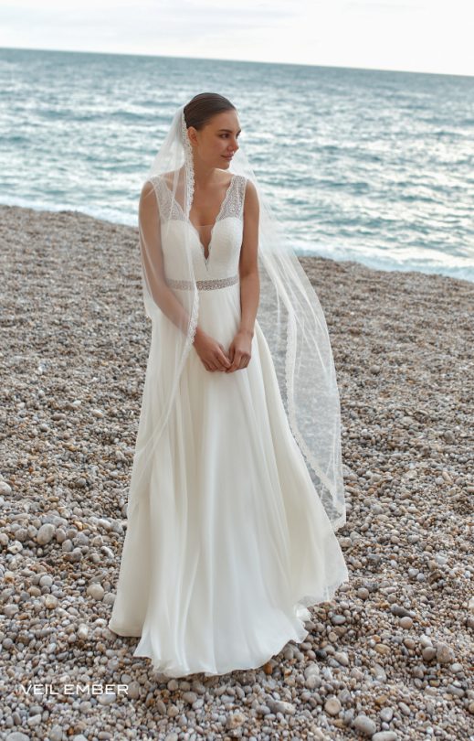 Tüllschleier mit Seidenspitzen-Bordüre, mit Kamm.