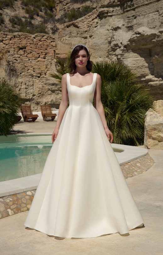 Das A-Linien-Kleid ist aus Satin gefertigt. Auf der Rückseite befindet sich ein Reißverschluss. Im Set ist dekorativer abnehmbarer Schleife.