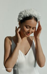 GrößentabelleDer Haarreifen ist voluminös, Breite 3 cm, Höhe mit Blumen 6 cm, verziert mit luftigen handgefertigten Chiffonblumen.