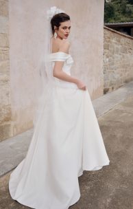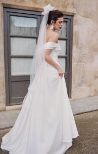 GrößentabelleDer Schleier am Kamm ist aus leichtem Tüll gefertigt und mit handgemachten Blumen verziert. Größe: 150×170 cm.