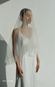 Tüllschleier bestickt handgefertigt mit Perlen von verschiedenen Größen.