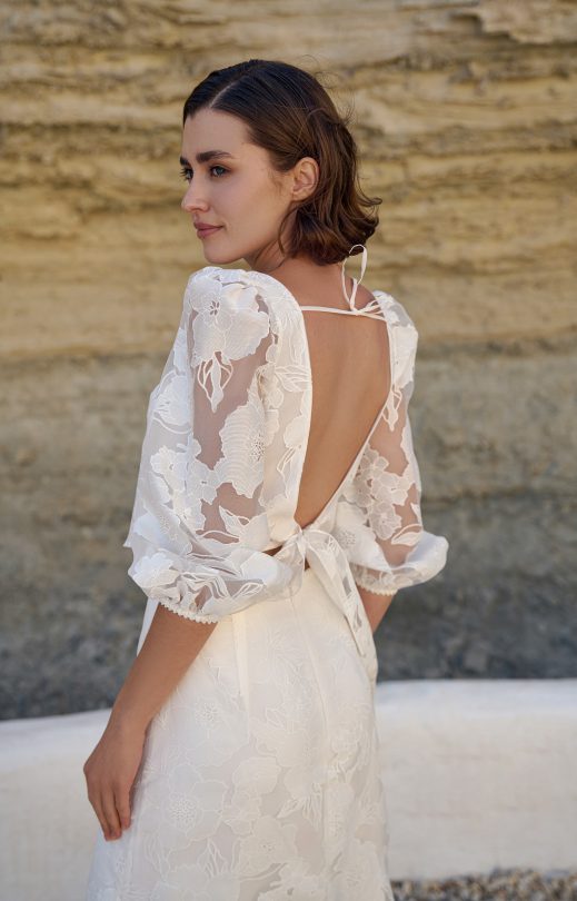 Топ выполнен из органзы с цветочным принтом. Перед с подкладкой, спинка без подкладки, сзади завязывается сверху на тонкую завязку, снизу-на бантик. Рукава-буфы снизу на резиночке.
